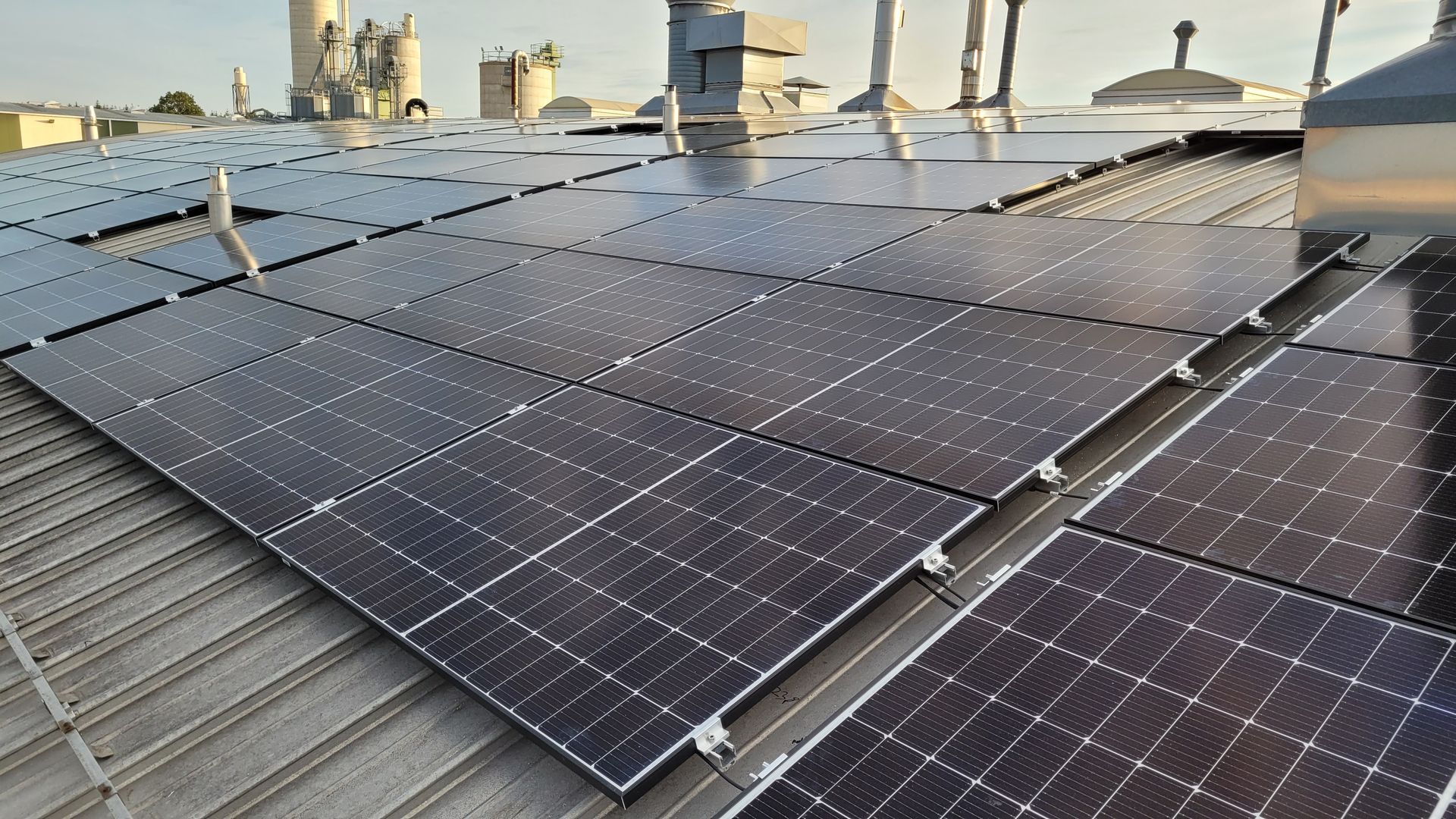 PV- Anlage mit 85 kWp Generatorleistung auf gewölbtem Hallendach