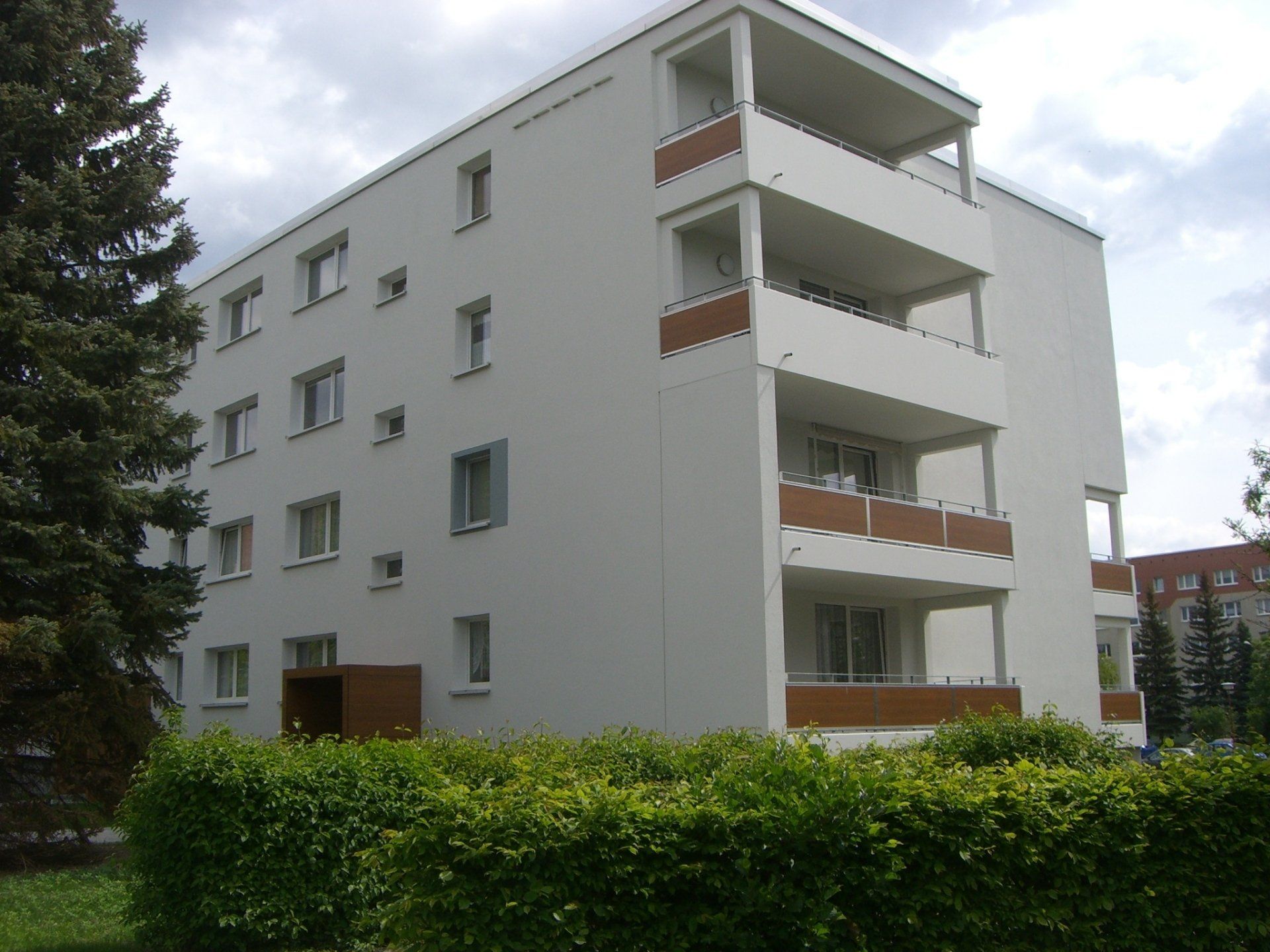 Umbau und Komplettsanierung eines ehemaligen Plattenbaus. Ausstattung mit 36 modern- und komfortabel ausgestatteten, barrierefreien Wohnungen sowie