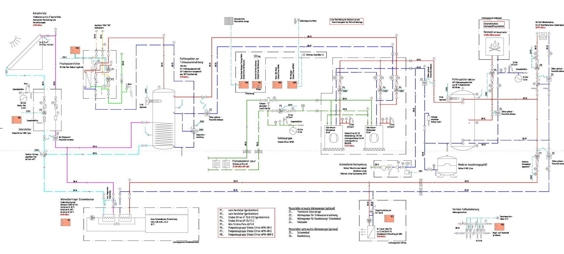 Fernmelde- und IT-Anlagen: Brandmelde- und Rufanlagen, Hauskommunikation, TK- und BK-Anlagen, Übertragungsnetze Wärmeversorgungsanlage: Wirtschaftliche Beheizung des Gebäudes mit bivalenter Heizungsanlage bestehend aus einer Sole/Wasser Wärmepumpe mit Erdsonden und einer Fernwärmeversorgung, Untersuchung der Sonden mit Thermal-Response-Test